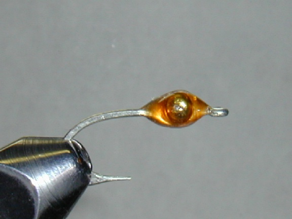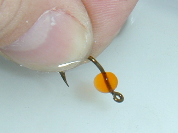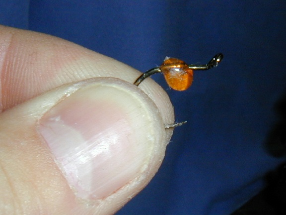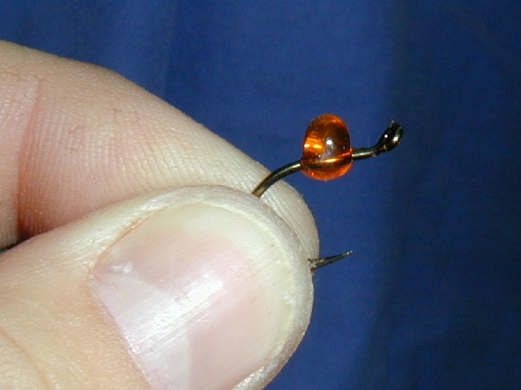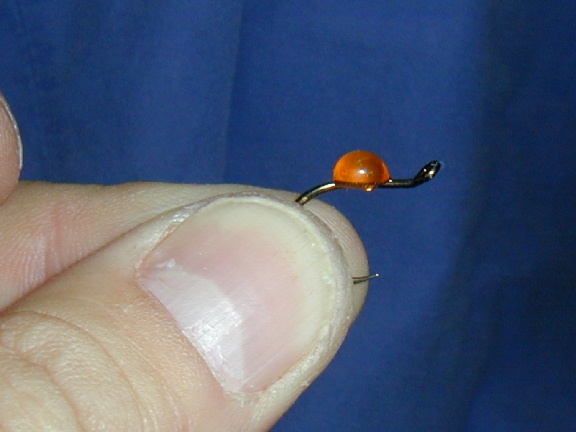 eggs on the hook. Remember: After each dipping into cold water you must make sure that ALL moisture is gone from the egg before you put another egg on. The water will make the Hot Head Glue bubble up and you'll end up with a bubbling mess. I normally just blow some air across the eggs to get rid of the moisture. You can also put on as many eggs as you wish. I have shown you the basic Egg Cluster. Please re-read the instructions of making the Single Egg for use of the glue gun. |