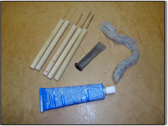 Place two or three fibers on work area surface and touch silicone coated needle (Step A above) to the fibers adhering them to the needle then proceed to Step B through E.
