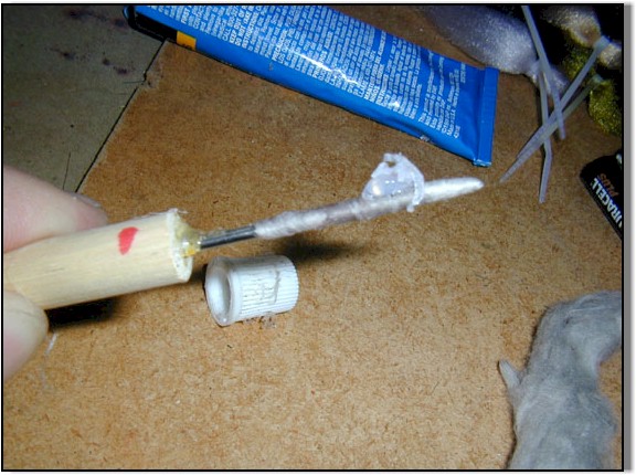 Take dubbing and place on needle (base of needle first) and twist needle to spin dubbing on needle to form body.